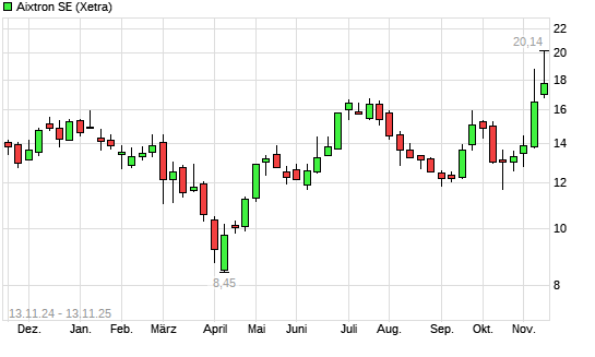 Mit dem Anstieg auf 19,47 EUR hat die Aixtron-Aktie (ISIN DE000A0WMPJ6) am 12.11.2025 ein neues 12-Monats-Hoch erreicht und damit den Kurs vom 10.11.2025 eingestellt.Die Aixtron-Aktie befindet ...weiterlesen