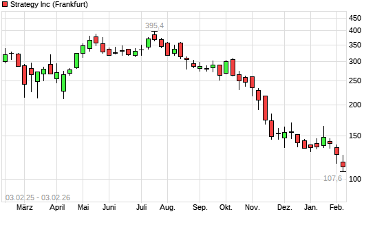 Mit dem Rücksetzer auf 118,60 EUR hat die Strategy-Aktie (ISIN US5949724083) am 02.02.2026 ein neues 12-Monats-Tief erreicht und damit den Kurs vom 29.01.2026 ...weiterlesen