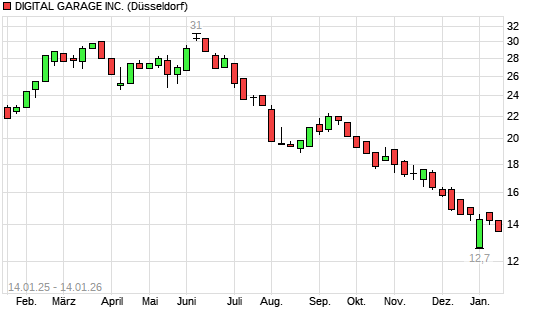 Mit dem Rücksetzer auf 13,90 EUR hat die Digital Garage-Aktie (ISIN JP3549070005) am 13.01.2026 ein neues 12-Monats-Tief erreicht und damit den Kurs vom 12.01.2026 eingestellt.Die Digital ...weiterlesen