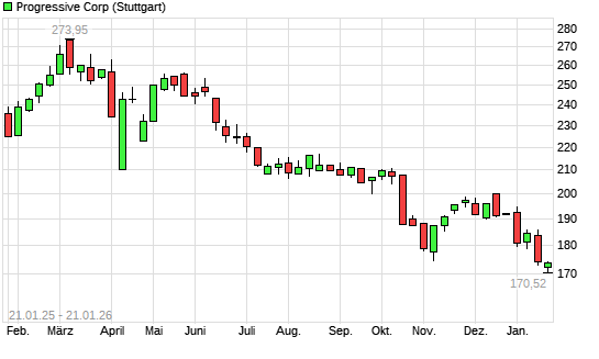 Mit dem Rücksetzer auf 172,66 EUR hat die Progressive-Aktie (ISIN US7433151039) am 20.01.2026 ein neues 12-Monats-Tief erreicht und damit den Kurs vom 19.01.2026 eingestellt.Die Progressive-Aktie ...weiterlesen