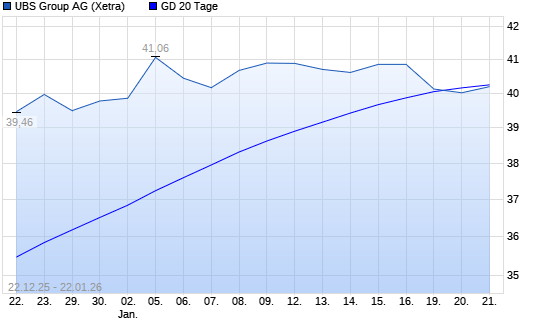 Mit dem Anstieg auf 40,62 EUR hat die UBS Group-Aktie am 21.01.2026 die 20-Tage-Linie nach oben gekreuzt.Die UBS Group-Aktie befindet sich seit dem 08.07.2025 im langfristigen Aufwärtstrend ...weiterlesen