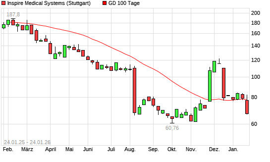 Mit dem Rücksetzer auf 67,18 EUR hat die Inspire Medical Systems-Aktie am 23.01.2026 die 100-Tage-Linie nach unten gekreuzt.Die Inspire Medical Systems-Aktie befindet sich seit dem 16.12.2025 ...weiterlesen