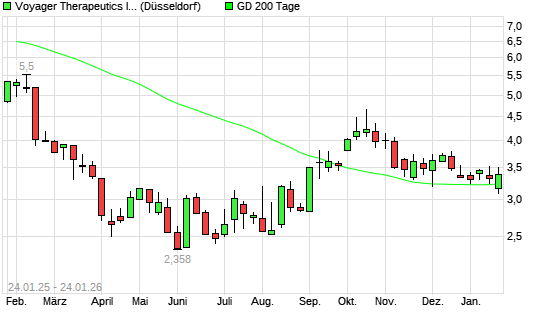 Mit dem Anstieg auf 3,33 EUR hat die Voyager Therapeutics-Aktie am 23.01.2026 die 200-Tage-Linie nach oben gekreuzt.Die Voyager Therapeutics-Aktie befand sich seit dem 19.01.2026 im langfristigen ...weiterlesen