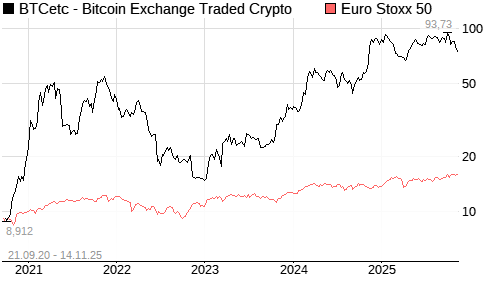 BTCetc - Bitcoin Exchange Traded Crypto / Euro Stoxx 50 Vergleich