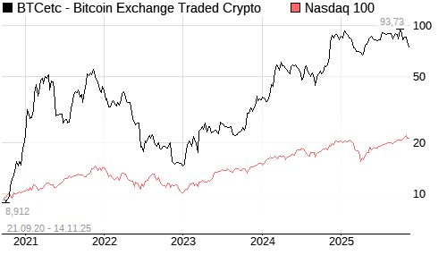 BTCetc - Bitcoin Exchange Traded Crypto / Nasdaq 100 Vergleich