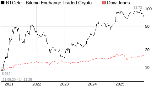 BTCetc - Bitcoin Exchange Traded Crypto / Dow Jones Vergleich
