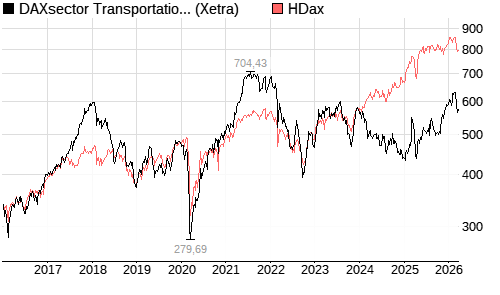 DAXsector Transportation+Logistics (Kursindex) im Chartvergleich