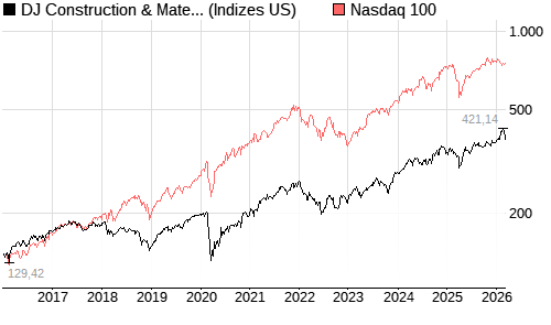 DJ Construction & Materials Titans 30 (Kursindex) / Nasdaq 100 Vergleich