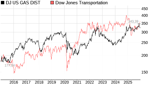 DJ US GAS DIST / Dow Jones Transportation Vergleich