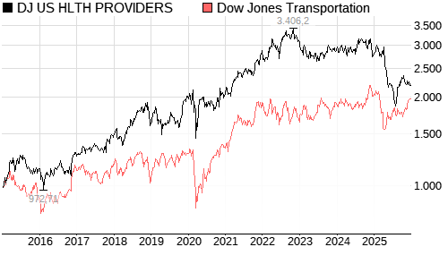 DJ US HLTH PROVIDERS / Dow Jones Transportation Vergleich