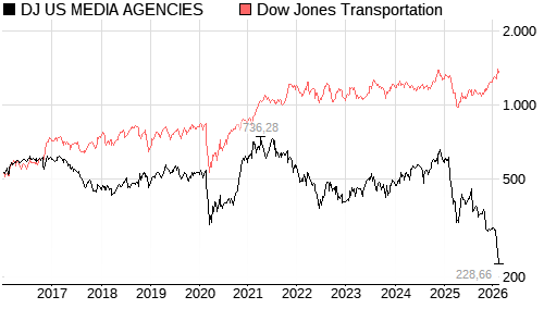 DJ US MEDIA AGENCIES / Dow Jones Transportation Vergleich