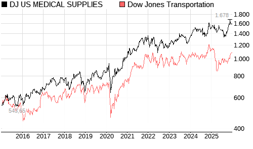DJ US MEDICAL SUPPLIES / Dow Jones Transportation Vergleich
