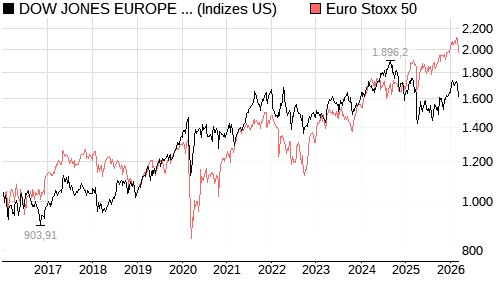DOW JONES EUROPE (EX UK) HEALTHCARE STOCK INDEX im Chartvergleich