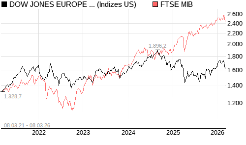 DOW JONES EUROPE (EX UK) HEALTHCARE STOCK INDEX / FTSE MIB Vergleich