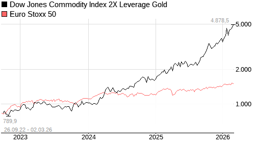 Dow Jones Commodity Index 2X Leverage Gold im Chartvergleich