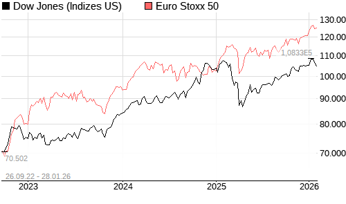 Dow Jones Industrial Average[Total Return] / Euro Stoxx 50 Vergleich