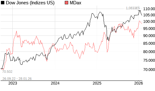 Dow Jones Industrial Average[Total Return] / MDax Vergleich
