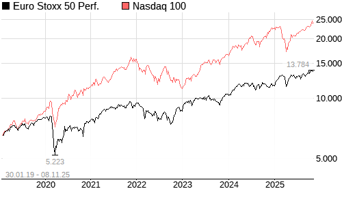 Euro Stoxx 50 Perf. / Nasdaq 100 Vergleich