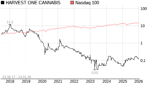 HARVEST ONE CANNABIS / Nasdaq 100 Vergleich