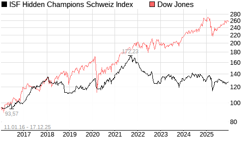 ISF Hidden Champions Schweiz Index / Dow Jones Vergleich