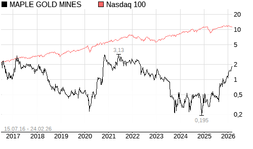 MAPLE GOLD MINES / Nasdaq 100 Vergleich