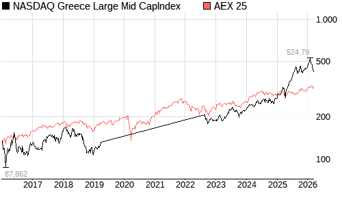 NASDAQ Greece Large Mid CapIndex / AEX 25 Vergleich