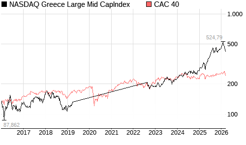 NASDAQ Greece Large Mid CapIndex / CAC 40 Vergleich