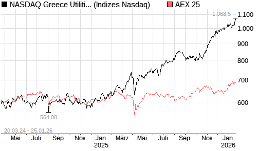 NASDAQ Greece Utilities AUD NTR Index [Index] / AEX 25 Vergleich