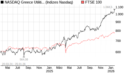 NASDAQ Greece Utilities AUD NTR Index [Index] / FTSE 100 Vergleich