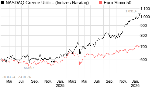 NASDAQ Greece Utilities AUDIndex [Index] / Euro Stoxx 50 Vergleich