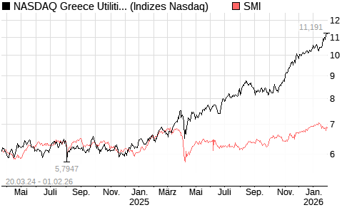 NASDAQ Greece Utilities JPY NTR Index [Index] / SMI Vergleich