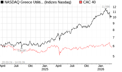 NASDAQ Greece Utilities JPYIndex [Index] / CAC 40 Vergleich