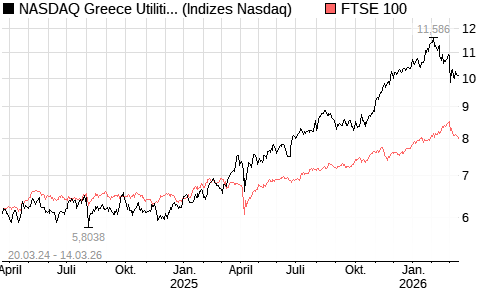NASDAQ Greece Utilities JPYIndex [Index] / FTSE 100 Vergleich