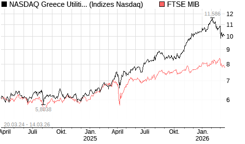 NASDAQ Greece Utilities JPYIndex [Index] / FTSE MIB Vergleich