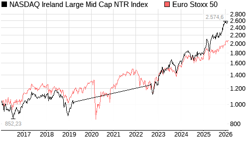 NASDAQ Ireland Large Mid Cap NTR Index / Euro Stoxx 50 Vergleich