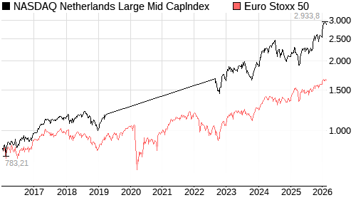NASDAQ Netherlands Large Mid CapIndex / Euro Stoxx 50 Vergleich