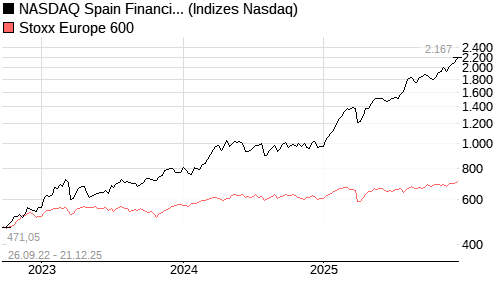 NASDAQ Spain Financials Large Mid Cap NTR Index [Index] / Stoxx Europe 600 Vergleich