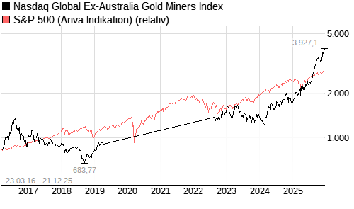 Nasdaq Global Ex-Australia Gold Miners Index / S&P 500 Vergleich