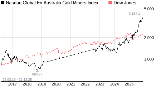 Nasdaq Global Ex-Australia Gold Miners Index / Dow Jones Vergleich