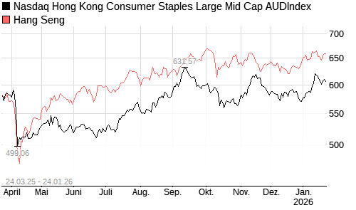Nasdaq Hong Kong Consumer Staples Large Mid Cap AUDIndex / Hang Seng Vergleich