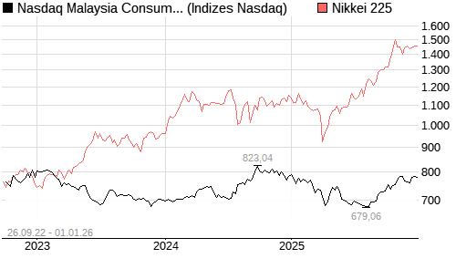 Nasdaq Malaysia Consumer Staples Large Mid Cap Index [Index] / Nikkei 225 Vergleich