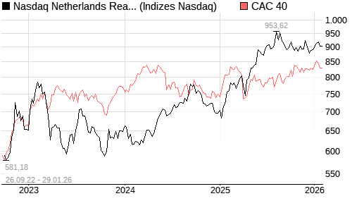 Nasdaq Netherlands Real Estate NTR Index [Index] / CAC 40 Vergleich