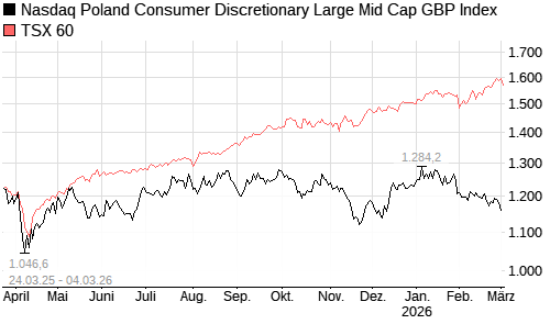 Nasdaq Poland Consumer Discretionary Large Mid Cap GBP Index / TSX 60 Vergleich