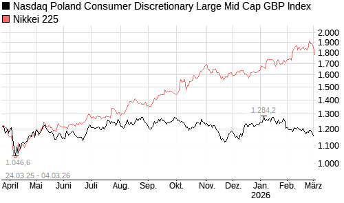 Nasdaq Poland Consumer Discretionary Large Mid Cap GBP Index / Nikkei 225 Vergleich