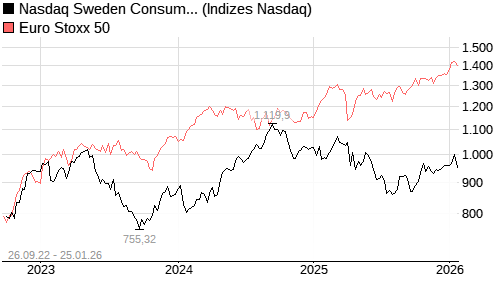 Nasdaq Sweden Consumer Staples Large Mid Cap Index [Index] / Euro Stoxx 50 Vergleich