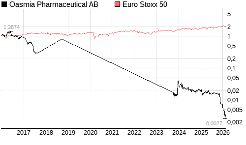 Oasmia Pharmaceutical AB / Euro Stoxx 50 Vergleich