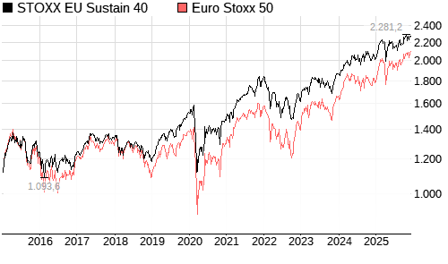 STOXX EU Sustain 40 / Euro Stoxx 50 Vergleich