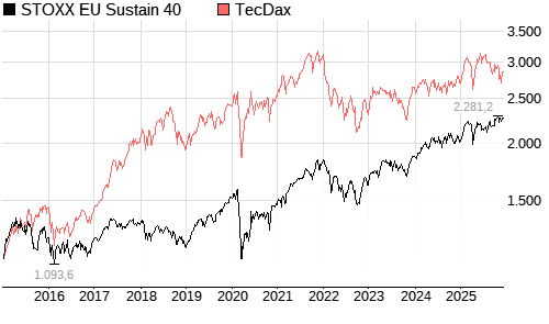 STOXX EU Sustain 40 / Nasdaq 100 Vergleich