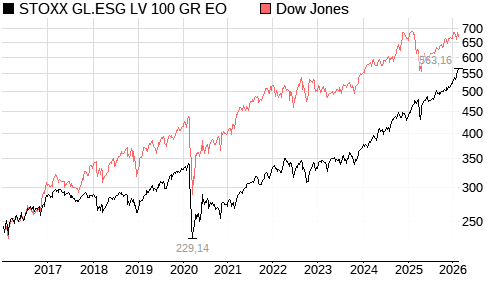 STOXX GL.ESG LV 100 GR EO / Dow Jones Vergleich