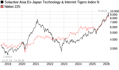 Solactive Asia Ex-Japan Technology & Internet Tigers Index N / Nikkei 225 Vergleich